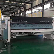 隧道式洗衣機(jī)配套設(shè)備之一,布草經(jīng)隧道式洗衣機(jī)預(yù)洗、主洗、漂洗出倉(cāng)后自動(dòng)進(jìn)入壓榨機(jī)進(jìn)行壓榨脫水。與傳統(tǒng)的壓榨設(shè)備相比,百?gòu)?qiáng)壓榨機(jī)采用 了先進(jìn)的經(jīng)過(guò)特殊設(shè)計(jì)的棱式壓榨頭 ,可以在壓榨過(guò)程中有效逐步去除布草中殘存 的空氣,防止在壓榨過(guò)程中因壓力過(guò)大出現(xiàn)布草爆損,大限度地保護(hù)布草的完好。 壓榨好的布草經(jīng)穿梭運(yùn)輸機(jī)進(jìn)入烘干機(jī)進(jìn)行打散烘干。